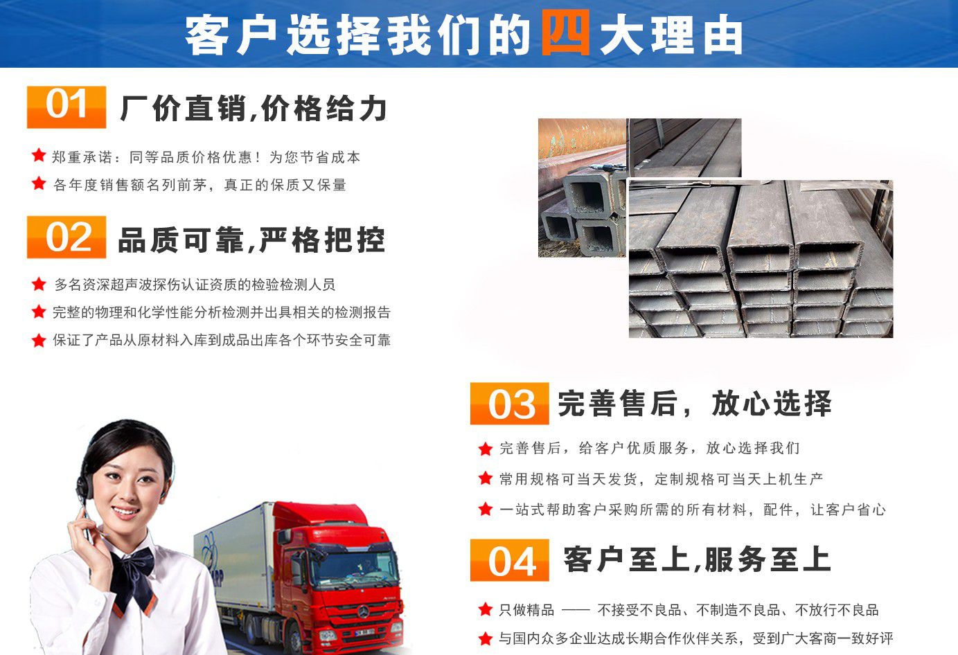 無錫盛灝特鋼有限公司長期銷售Q355B方矩管,鍍鋅方矩管,大口徑方矩管,厚壁方矩管,無縫方矩管等各種方管產(chǎn)品!產(chǎn)品廣泛應(yīng)用于鋼結(jié)構(gòu)建筑(鋼管混凝土、管樁、管桁架,橋梁、海上作業(yè)平臺(tái)、港口碼頭建設(shè)、電視通訊鐵塔、電力鐵塔等鋼結(jié)構(gòu)管)。壓力管道(石油、天然氣、煤漿等輸送)、機(jī)械制輥等領(lǐng)域。 公司自創(chuàng)辦以來,一直堅(jiān)持“誠信合作,共同發(fā)展”的經(jīng)營理念。 一直以來我們本著“以誠相待,以信為本,互利互惠,共同發(fā)展”的長期方針,充分發(fā)揮現(xiàn)貨資源優(yōu)勢為您提供“可靠的產(chǎn)品、過硬的質(zhì)量、完善的服務(wù)”,歡迎廣大新老客戶前來洽談業(yè)務(wù)。 公司以“至誠至信,雙利雙贏”為根本宗旨,堅(jiān)持科技興企的發(fā)展策略,恪守商規(guī),創(chuàng)新進(jìn)去,贏得聲譽(yù),贏得了市場,得到了社會(huì)各階層的認(rèn)可。公司以雄厚的實(shí)力、可靠的質(zhì)量、儲(chǔ)存鋼管門類齊全、庫存量大之優(yōu)勢,本著守法、守信、創(chuàng)新的理念,打造精品,發(fā)展鋼管多元化品種,滿足客戶各種需求,以低廉的價(jià)格、熱情的服務(wù)面向國內(nèi)外客戶,歡迎鋼管界同仁加盟!我們?yōu)榭蛻籼峁┲艿降姆?wù) ! 公司為客戶提供以下服務(wù) 服務(wù)三保: 保證質(zhì)量、保證時(shí)間、保證數(shù)量。 服務(wù)宗旨: 雄厚的實(shí)力、優(yōu)質(zhì)的產(chǎn)品、低廉的價(jià)格、周到的服務(wù)。 批零兼營,一支起定。...